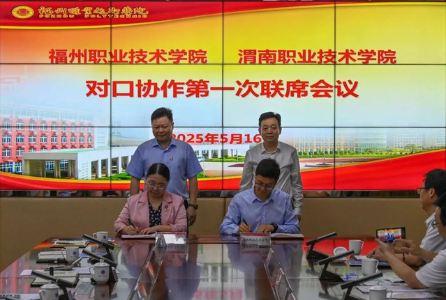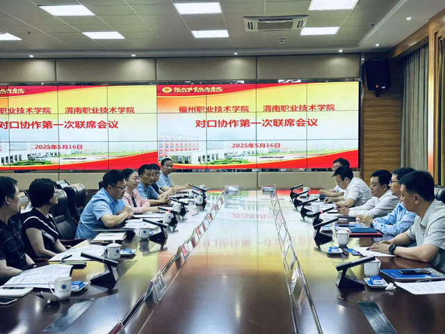 為進一步落實《渭南市人民政府福州市人民政府新一輪高質(zhì)量發(fā)展戰(zhàn)略合作協(xié)議》,深化兩地教育協(xié)作,5月16日,學校與渭南職業(yè)技術(shù)學院召開對口協(xié)作第一次聯(lián)席會議。福州職業(yè)技術(shù)學院校長陳念東、黨委副書記劉春蘭,渭南職業(yè)技術(shù)學院黨委書記陳峰、副校長趙永剛,以及兩校相關(guān)部門負責人參加會議。