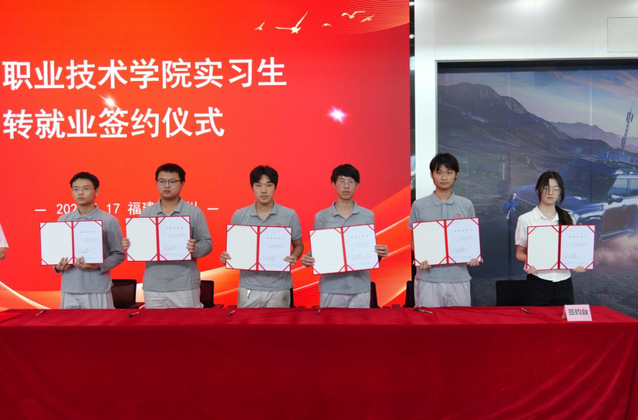 活動中,參會嘉賓與學生代表實地參觀了校企共建的研學基地,深入了解產(chǎn)教融合實踐成果?,F(xiàn)場還舉行了福州職業(yè)技術(shù)學院實習生轉(zhuǎn)就業(yè)簽約儀式,6名優(yōu)秀學子實現(xiàn)“畢業(yè)即就業(yè)”的無縫對接,生動展現(xiàn)了校企合作的顯著成效。