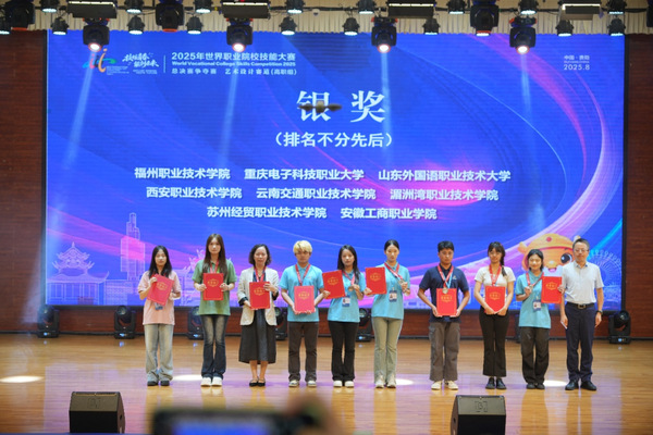 近日,2025年世界職業(yè)院校技能大賽總決賽爭(zhēng)奪賽藝術(shù)設(shè)計(jì)賽道(高職組)在貴州電子商務(wù)職業(yè)技術(shù)學(xué)院圓滿落幕。我校文化旅游學(xué)院學(xué)子倪津津、謝春鑫、陳瑤、翁晨熠(指導(dǎo)教師:佘金勇、何方)憑借扎實(shí)的專業(yè)功底、卓越的創(chuàng)新能力與默契的團(tuán)隊(duì)協(xié)作,榮獲大賽銀獎(jiǎng)。