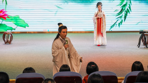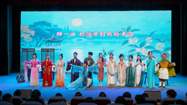 該劇以閩劇始祖曹學佺與400多年后福建省實驗閩劇院一名年輕的閩劇演員跨越時空的邂逅為線索,將唯美動人的中國古典舞、流行音樂、古箏演奏與傳統(tǒng)閩劇折子戲《雙蝶扇·憶雙蝶》《荔枝換絳桃·投荔》及《白蛇傳》選段,巧妙地融合并呈現(xiàn),以創(chuàng)新形式展現(xiàn)閩劇魅力,為師生帶來高雅藝術的沉浸式體驗。