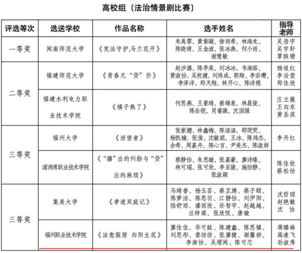 近日,福建省教育廳、福建省司法廳公布了第十屆全省學生“學憲法 講憲法”系列活動獲獎名單。我校學子憑借扎實的法治素養(yǎng)和出色的綜合素質脫穎而出。其中,學生工作處報送、吳良銘同學演講的《從迷彩綠到憲法紅》(指導教師:戴銀龍)榮獲高校組憲法演講比賽二等獎;校團委與交通工程學院聯(lián)合報送的作品《法愈裂隙向陽生花》(指導教師:蔣璐琳、高凌飛、孫淑秀)榮獲法治情景劇比賽三等獎。